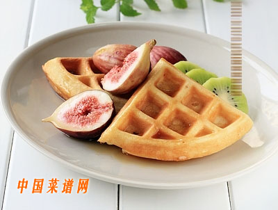 材料:低筋面粉100克、牛奶75克、细砂糖30克、盐1/4小匙、鸡蛋2个、无盐黄油35克、无铝泡打粉1/2小匙、色拉油少许、各色水果、枫糖浆适量。