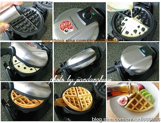 5 在华夫饼机的烤盘上喷少许色拉油,盖上机盖,然后接上电源,调至合适的温度控制,我用的是最低档;
