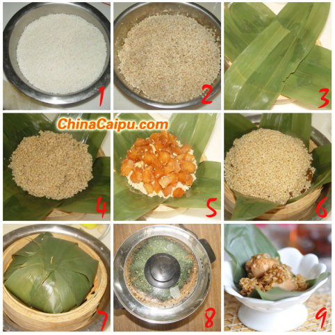 2、糯米提前浸泡半天最好,可以缩短蒸制时间。
