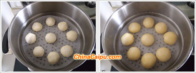 12、盖上锅盖,大火蒸6.7分钟即可,中间可以掀盖放一次气,以免湿气滴落面团表面塌陷。