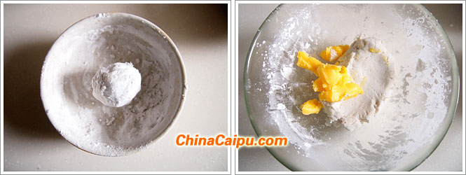 7、加入酥油后,建议带上一次性手套来揉面团,会比较好操作。