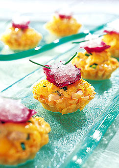 3.将鸡蛋放入蛋挞中,用燕窝装饰即可。