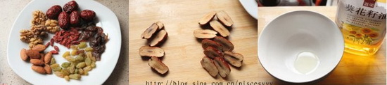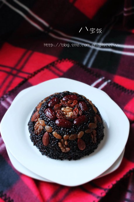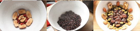 材料:血糯米250g、黄油20g、各色干果适量(红枣、桂圆肉、枸杞、红豆沙、葡萄干、核桃仁、大杏仁)