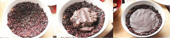 1、血糯米淘洗干净后用清水浸泡两个小时以上,放适量的水入电饭煲煮熟;