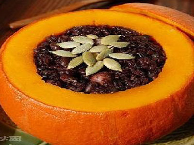 南瓜八宝饭的材料:圆形小南瓜1个,糯米少许,黑米少许,莲子少许,花生少许,红豆少许,葡萄干少许,松子仁少许,南瓜子仁少许,红豆沙少许,糖少许,油少许南瓜八宝饭的做法:1.首先把红豆、花生、莲子泡过夜,糯米、黑米蒸之前也浸泡3、4个小时,比较容易软糯。蒸的时候水要比平时煮饭的时候少放一点,同时在里面加一点油,放入蒸锅中,大火蒸30分钟。2.蒸好后趁热拌入白糖(甜度自己掌握,喜欢吃甜的可以多放点)。3.南瓜洗净,从1/4处切开,挖出内瓤。4.填一层先前蒸好的八宝饭再填一层葡萄干和松子仁、再填一层豆沙,最后再填一层八宝饭。5.上蒸锅,大火蒸30分钟。