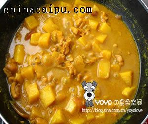 1、准备原料:鸡腿2只,土豆一大棵,元葱一个,蒜米适量,牛奶1l,肉骨汤1l,黄油40g,白糖20g,咖喱粉20g,盐适量;