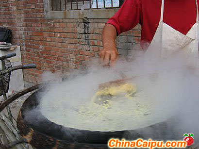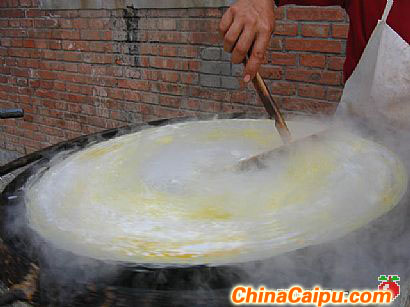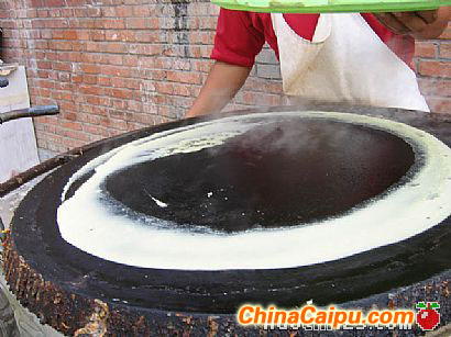 山东煎饼在中国非常出名,很多街头小摊都当街自制煎饼当早饭卖,但那些着实不够正宗。煎饼因其脆、香、薄而闻名。蒲松龄也是一个爱吃煎饼的人,专门写了一篇<煎饼赋>,其中一句:“圆如望月,大如铜钲,薄似剡溪之纸,色似黄鹤之翎,此煎饼之定制也。”就是这样了,蒲松龄专门为煎饼写斌,可见有多喜爱。