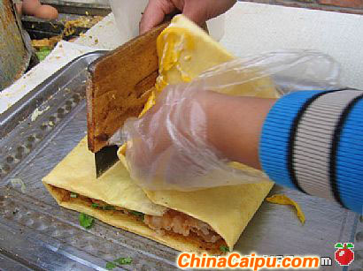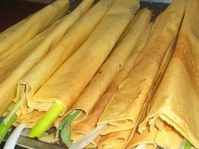 小贴士:正宗山东薄饼是要夹大葱的,也可以根据自己的口味选择添加不同的食材。
