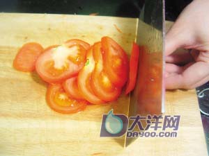 2 番茄洗净去蒂,切成厚片;红萝卜去皮洗净,切成细丝;西兰花摘成小朵洗净;姜剁成蓉。
