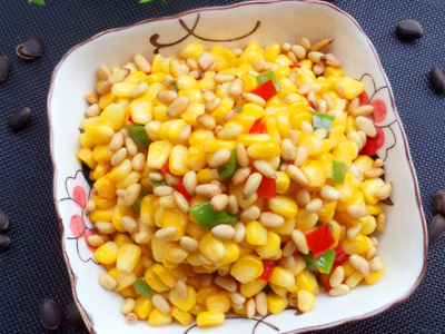 松仁玉米松子仁,营养丰富,口味独特,可以直接食用,也可以放入面包,蛋糕,饼干里面,还可以入菜哦。这道松仁玉米,清爽可口,还能补肾益气。主料:玉米(鲜)1根 松子仁80克辅料:青椒10克 红椒10克 植物油30毫升 白糖3克 食盐3克做法:1.把玉米剥粒,青、红椒切小粒2.锅内坐水,放一点白糖,水开后下玉米焯烫至熟,然后捞出过凉,沥干水备用3.炒锅不放油,直接把松子仁煸香
