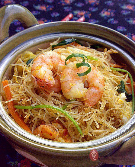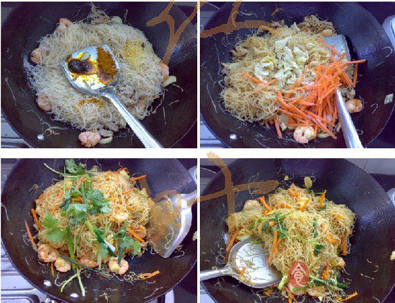 7 等到米粉的两面均煎至有点焦,下调味料