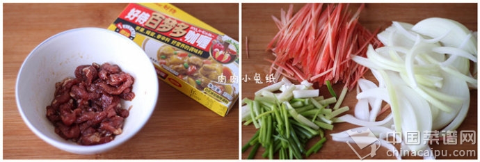 咖喱牛肉炒米粉上海这边卖炒米粉的很少,大多数都是桂林的汤米粉,特别怀念家乡的炒米粉,那味道特别好。这款咖喱牛肉炒米粉,芳香四溢,美味十足,想家的时候来一份,怀念曾经的味道。材料:细米粉150克、牛肉50克、胡萝卜半个、洋葱半个、鸡蛋1个、小葱10克、咖喱2快、酱油5ml、盐2克、油适量。做法:1、米粉在温热的水中浸3分钟捞出,再放入冷水中浸2分钟。2、捞出,沥干水分。3、牛肉切丝,倒入酱油拌均匀,再倒入适量的油抓板均匀,腌制15分钟。4、洋葱、胡萝卜切丝、小葱切段。