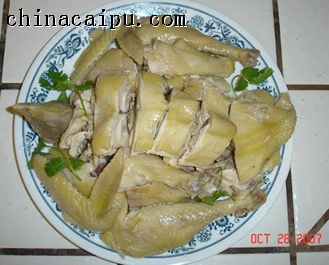 做法: 鸡洗好抹干,用料酒将鸡内腔搽匀,用盐将鸡里里外外搽均匀。然后将姜和青葱放在鸡内腔。然后放进锅里隔水蒸大约30分钟即可。