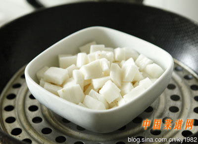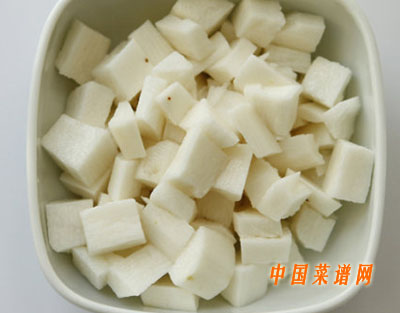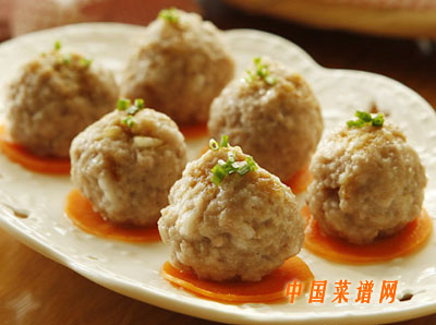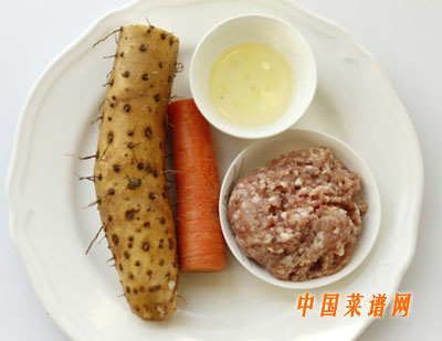 材料:胡萝卜半根、山药150克、猪肉糜300克、蛋清25克