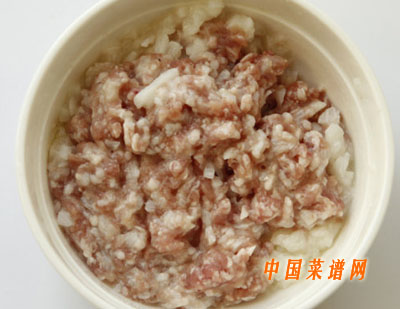 5:倒入万字酱油顺一个方向,尽可能多的搅拌,将肉馅上劲。