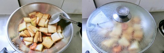 3、待冬瓜入味后淋入适量葱花、胡椒粉调味略翻炒收汁勾芡后即可装盘。