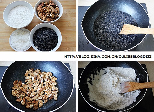 1、黑芝麻和核桃仁要是熟的,可以省略炒香这步,要是生的,就必须放入烤箱或锅中焙熟,这样香味才能散发出来